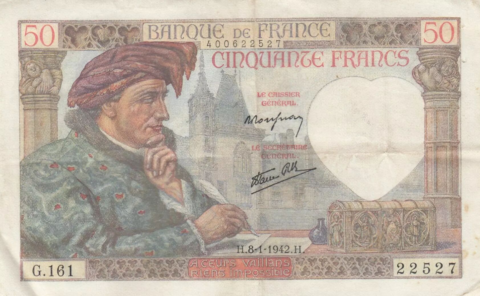 Billet France 50 Francs - Jacques Coeur - 08-01-1942 - Série G.161