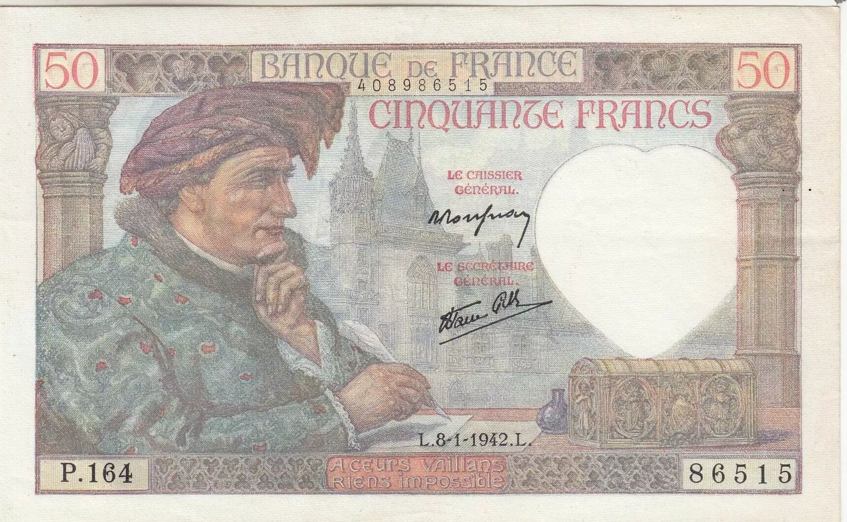 Billet France 50 Francs - Jacques Coeur - 08-01-1942 - Série P.164