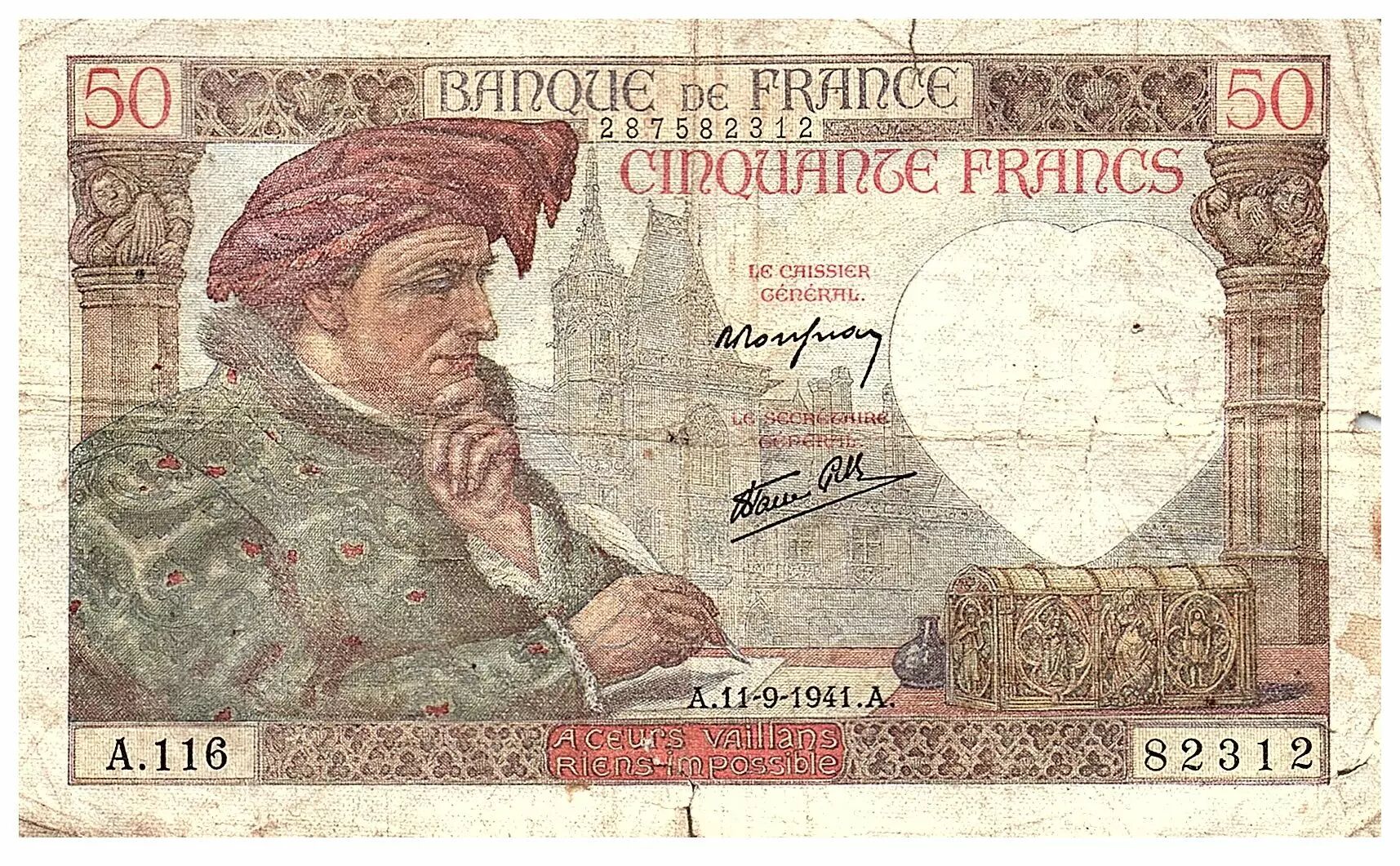 Banknote France 50 Francs Jacques Coeur - 11-09-1941 - Serial A.116