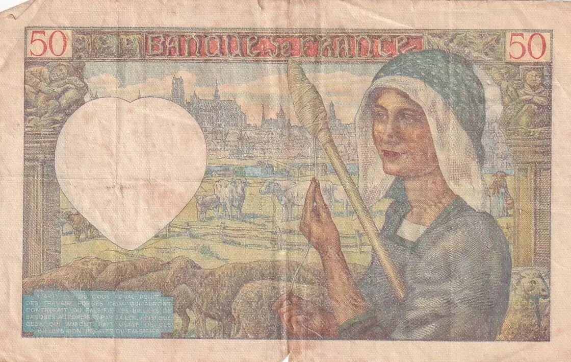 Banknote France 50 Francs Jacques Coeur - 11.09.1941 - Serial A.117