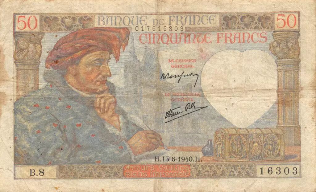 Home > > France 50 Francs Jacques Coeur - 13-06-1940 Serial B.8 - F