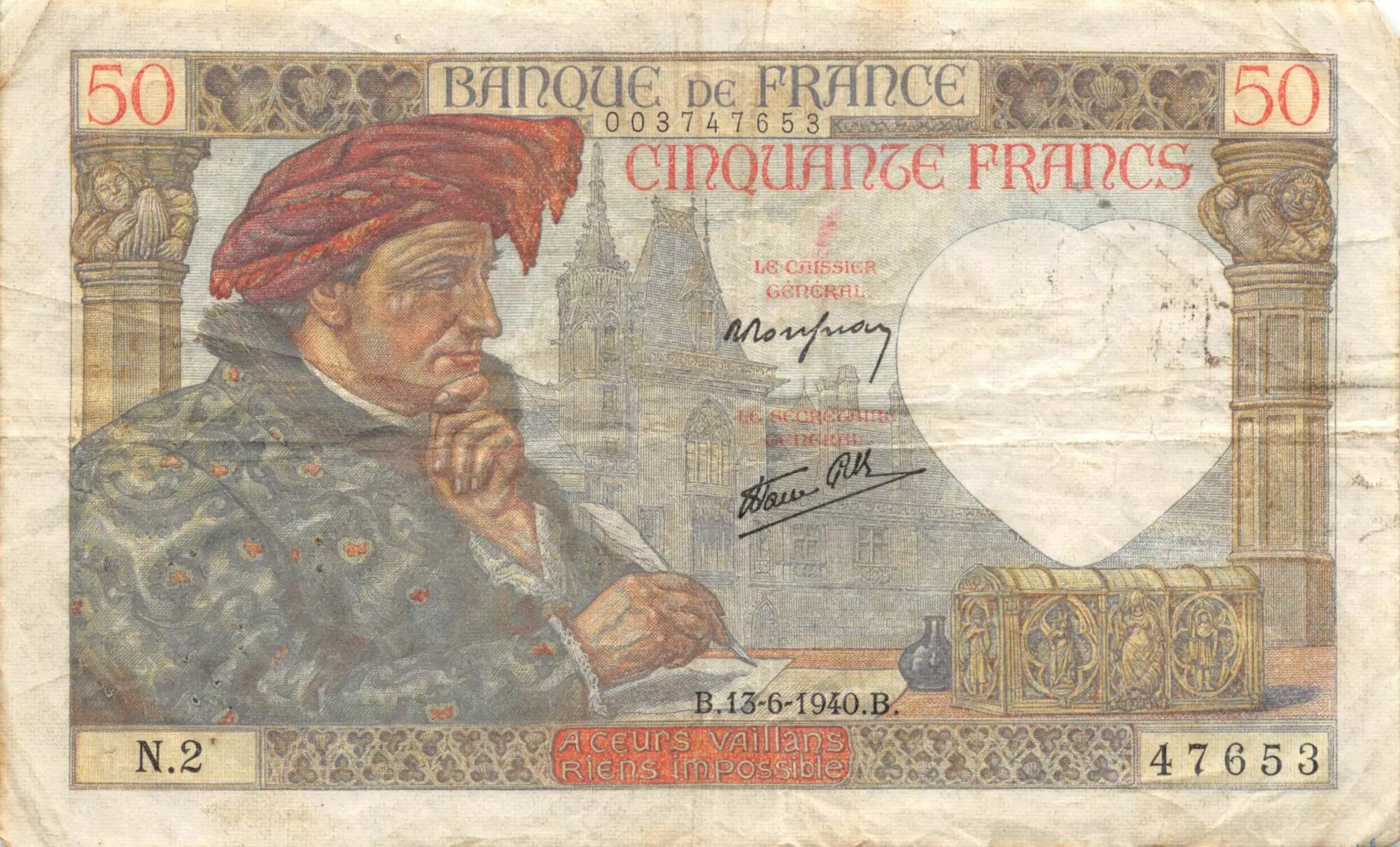Banknote France 50 Francs Jacques Coeur - 13-06-1940 Serial N.2 - VF