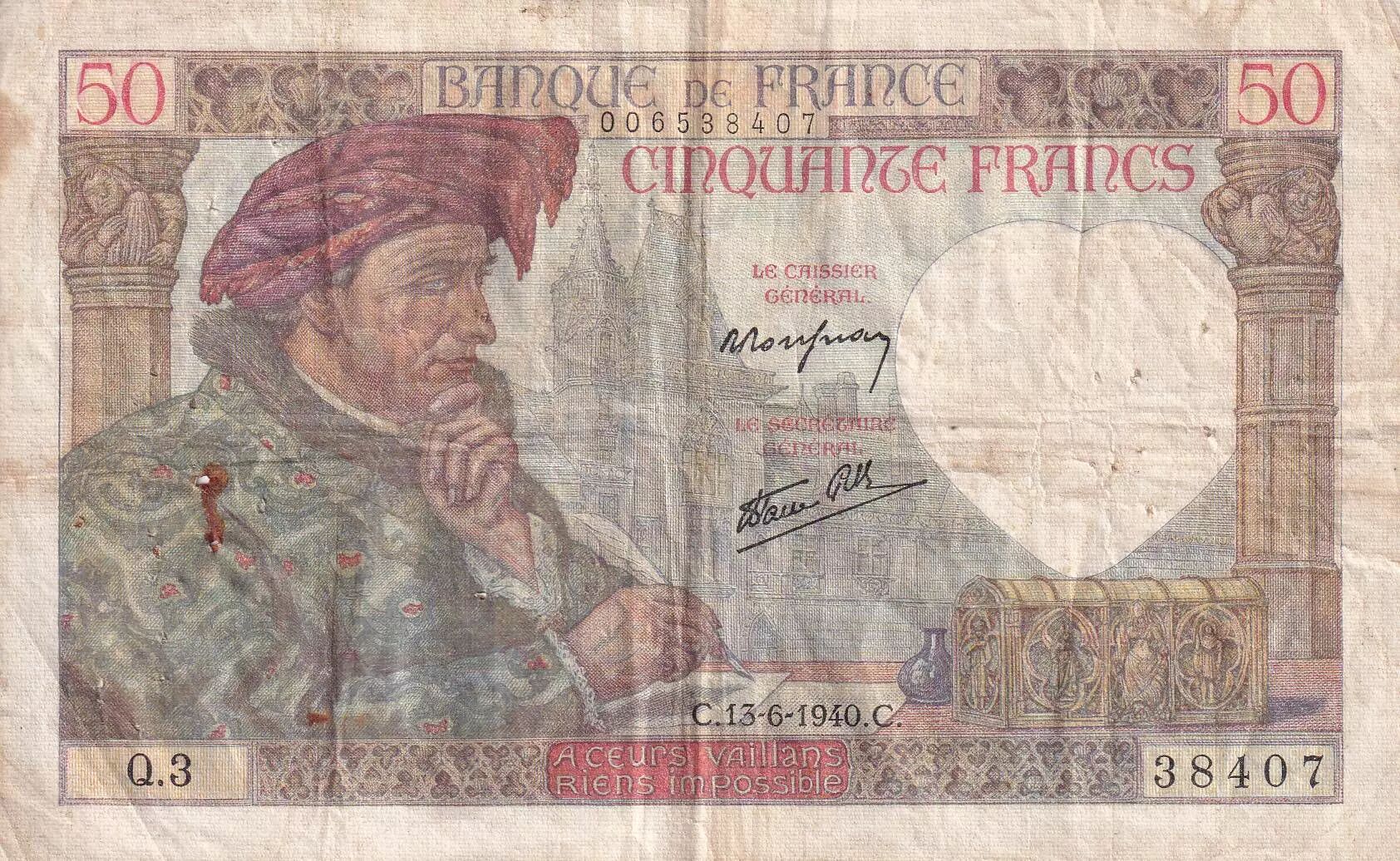 Banknote France 50 Francs Jacques Coeur - 13-06-1940 - Serial Q.3 - F - P.93