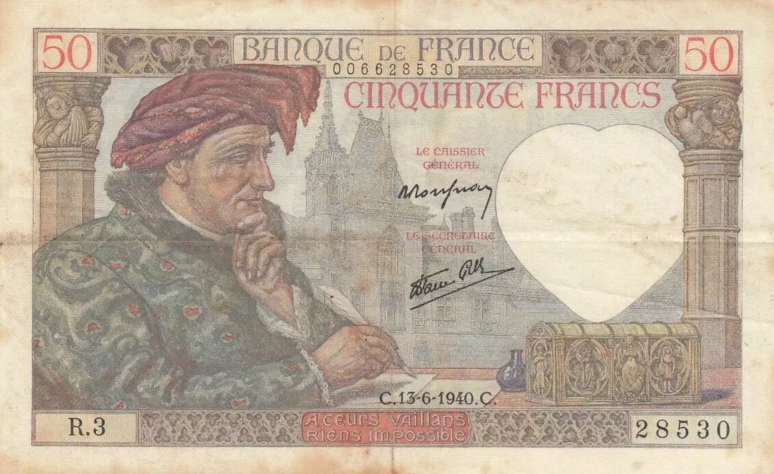 Banknote France 50 Francs Jacques Coeur - 13-06-1940 - Serial R.3