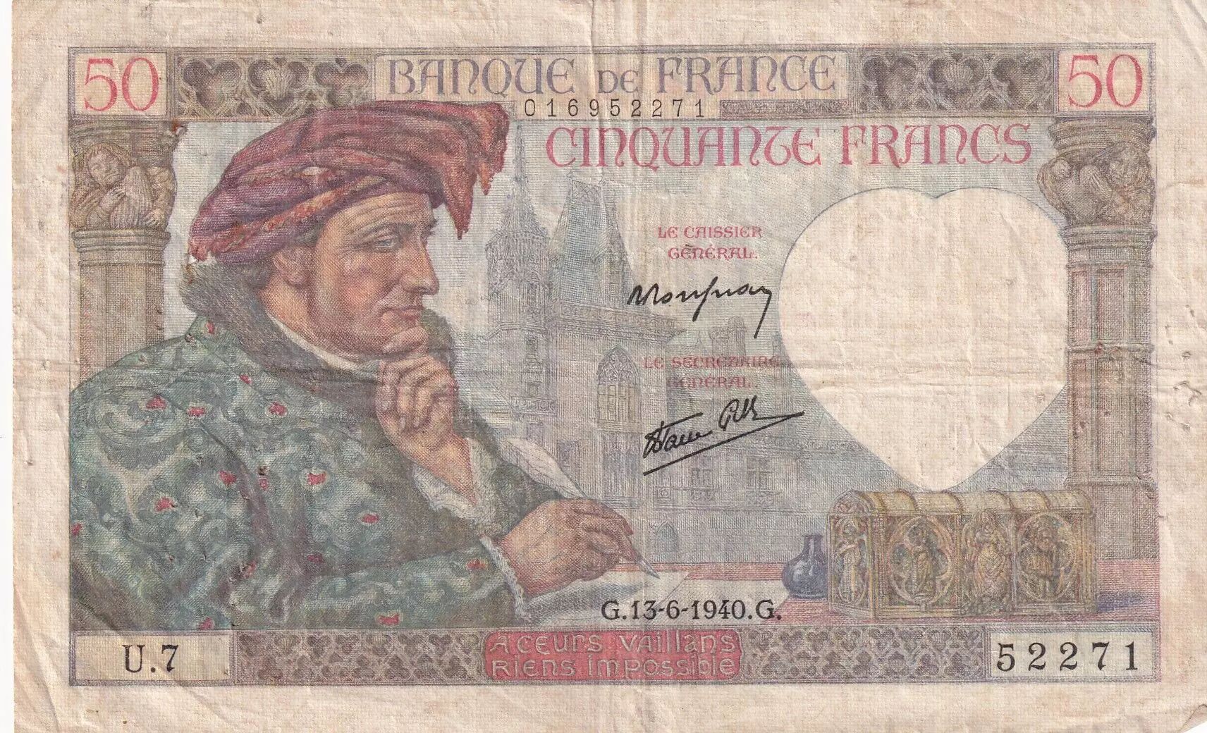 Banknote France 50 Francs Jacques Coeur - 13-06-1940 - Serial U.7