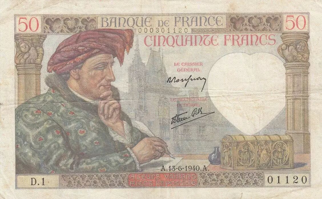 Billet France 50 Francs Jacques Coeur - 13-06-1940 - Série D.1