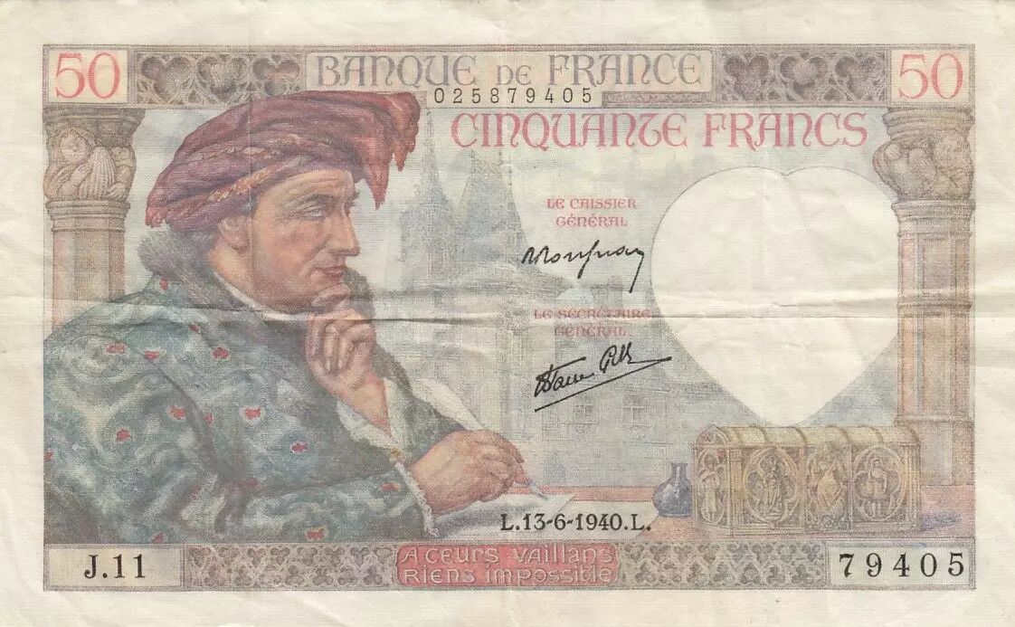 Billet France 50 Francs Jacques Coeur - 13-06-1940 - Série J.11