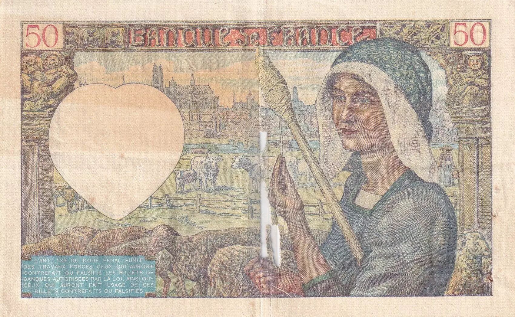 Plis, un épinglage. Manque au centre, scotch au verso