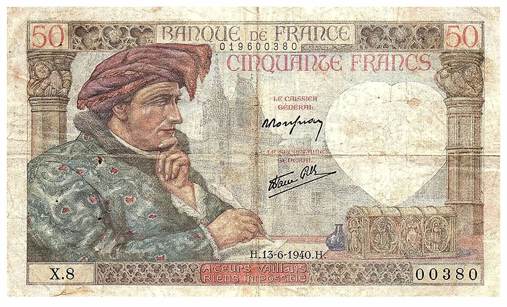 Billet France 50 Francs Jacques Coeur - 13-06-1940 - Série X.8-00380 - F.19.01
