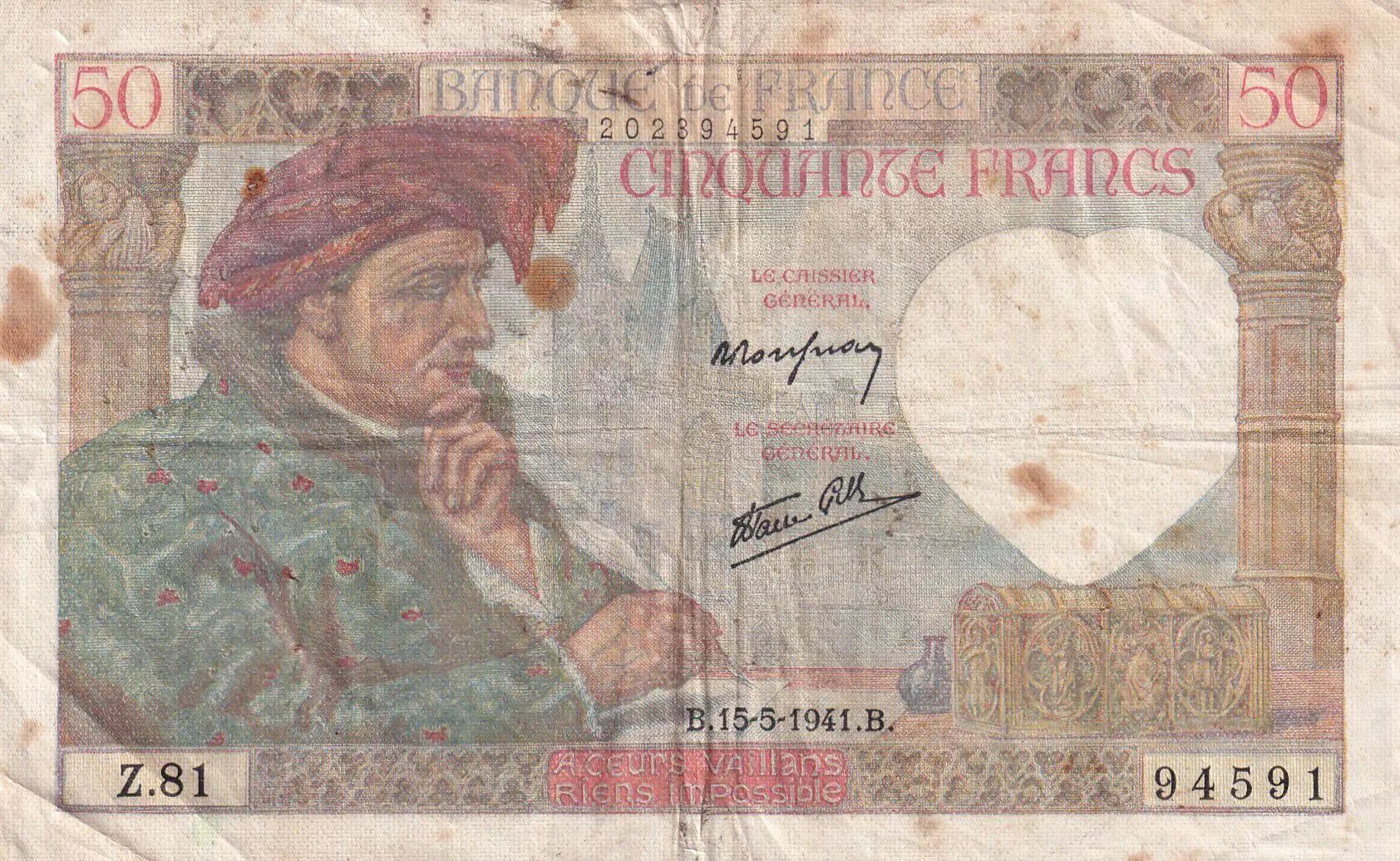 Home > > France 50 Francs Jacques Coeur - 15-05-1941 - Serial Z.81 - P.93