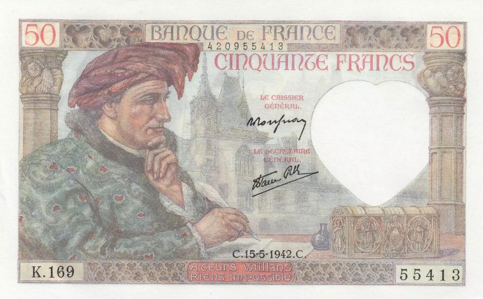 Banknote France 50 Francs - Jacques Coeur - 15-05-1942 - Serial K.169