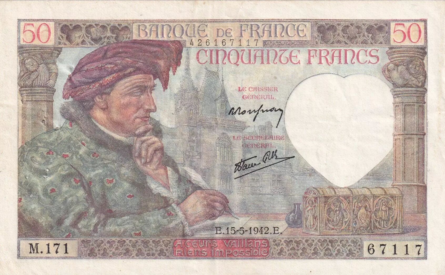 Home > > France 50 Francs Jacques Coeur - 15-05-1942 - Serial M.171