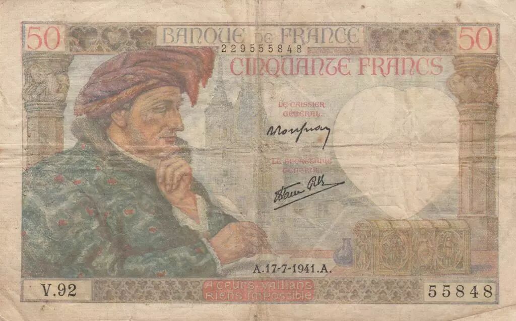 Home > > France 50 Francs Jacques Coeur - 17-07-1941 - Serial V.92