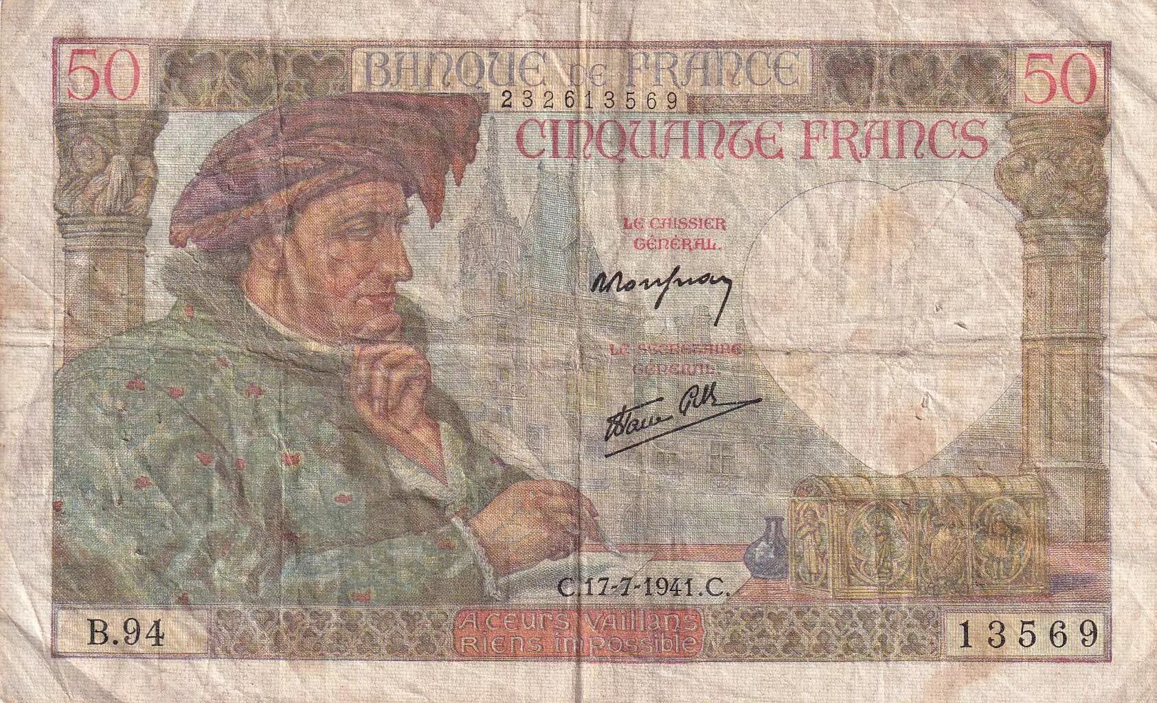 Accueil > Archivage > France 50 Francs Jacques Coeur - 17-07-1941 - Série B.94 - PTB - F.19.12
