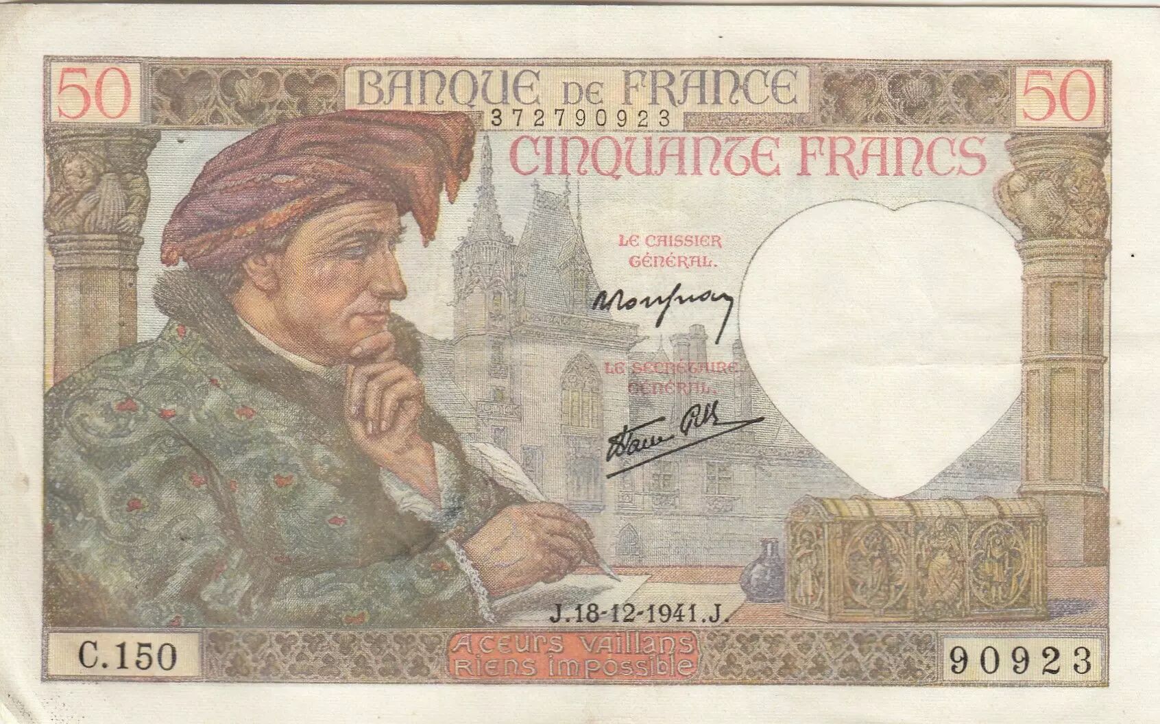 Banknote France 50 Francs - Jacques Coeur - 18-12-1941 - Serial C.150