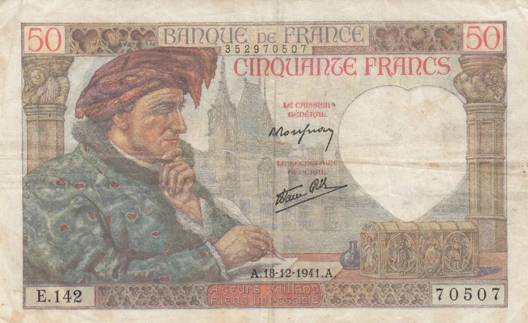 Billet France 50 Francs - Jacques Coeur - 18-12-1941 - Série E.142