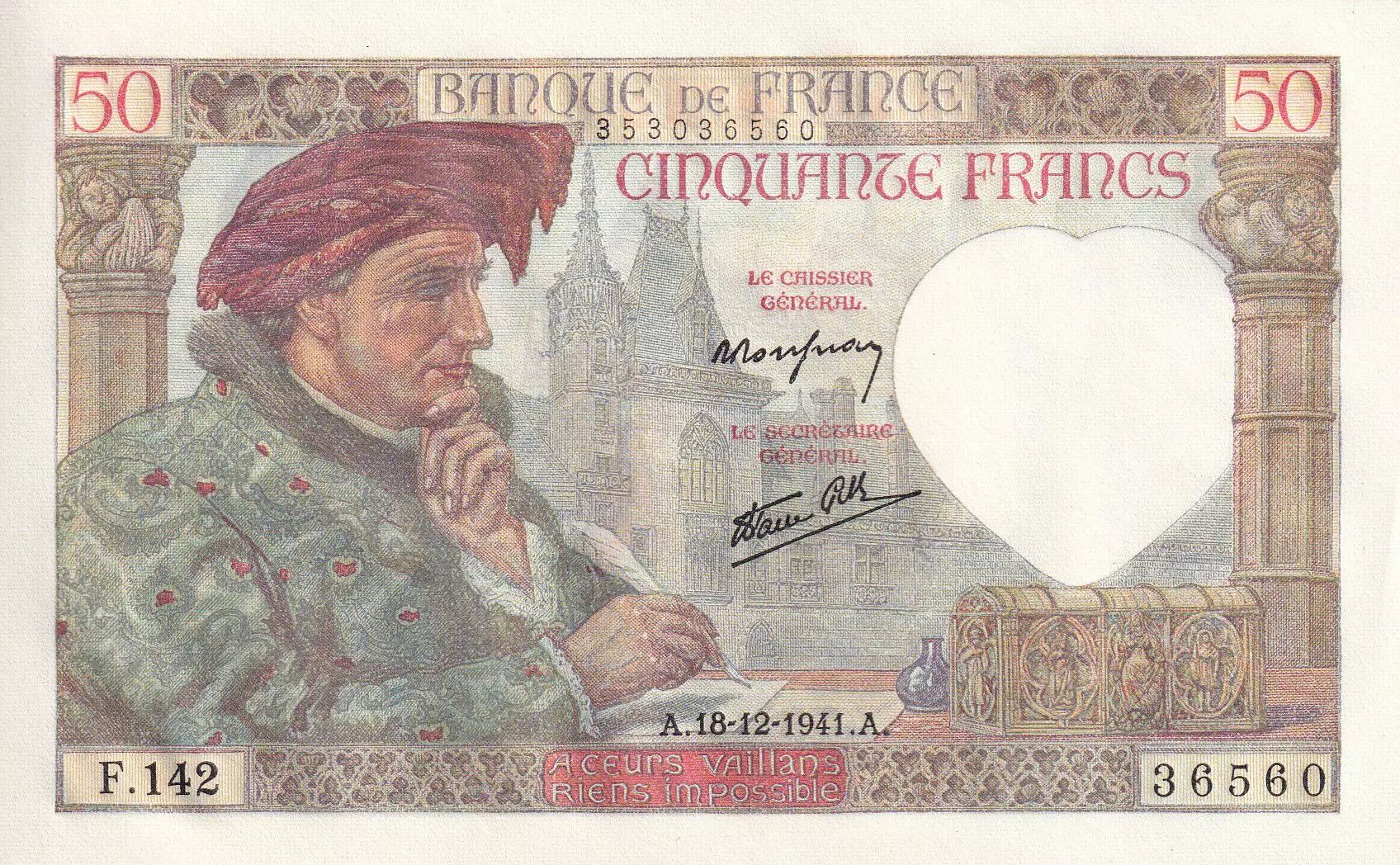 Accueil > Archivage > France 50 Francs - Jacques Coeur - 18-12-1941 - Série F.142 - F.19.17
