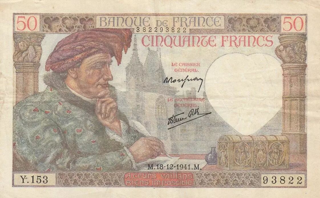 Billet France 50 Francs Jacques Coeur - 18-12-1941 - Série Y.153 - TTB