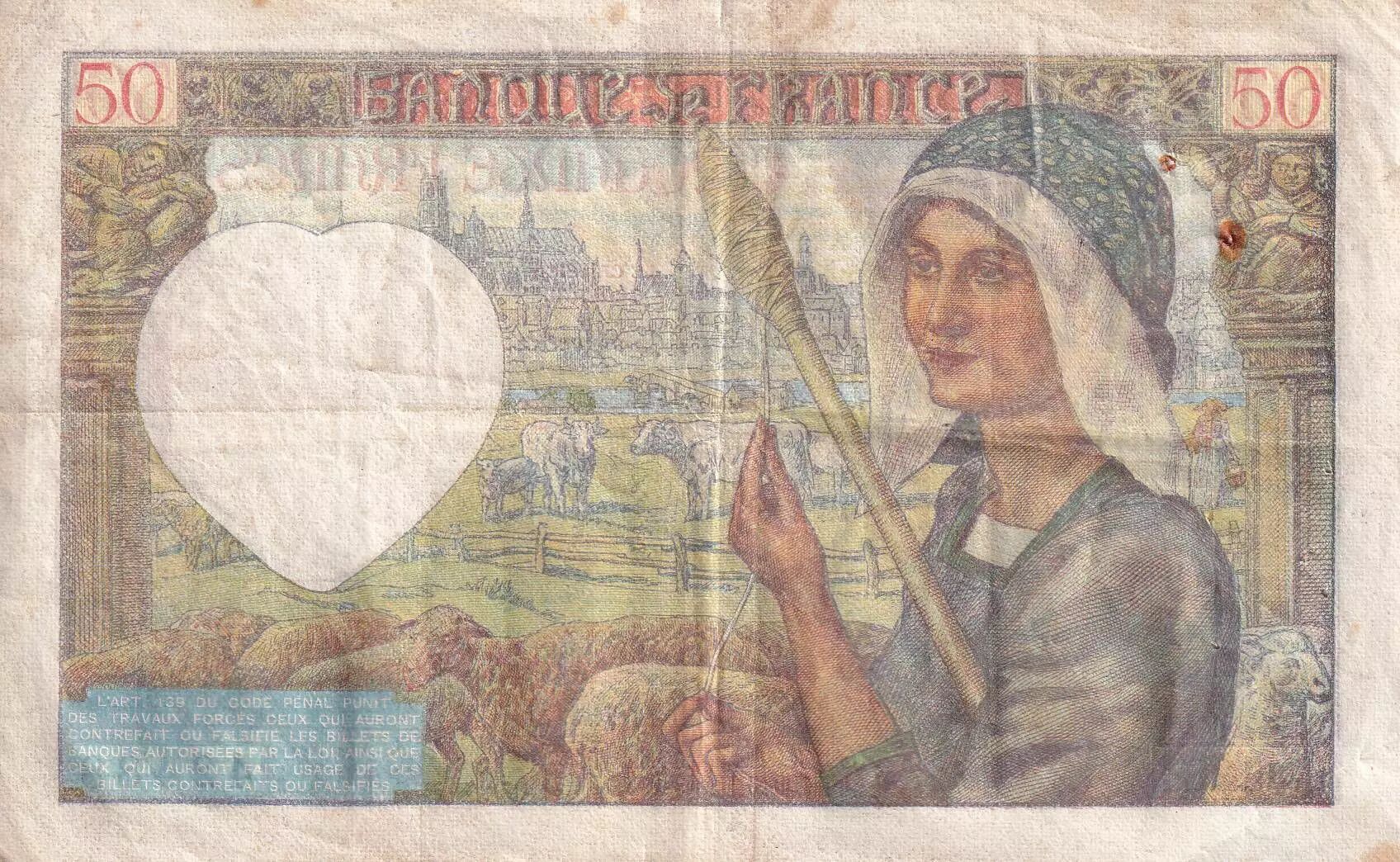 Banknote France 50 Francs Jacques Coeur - 20-11-1941- Serial Q.138 - F to VF - P.93