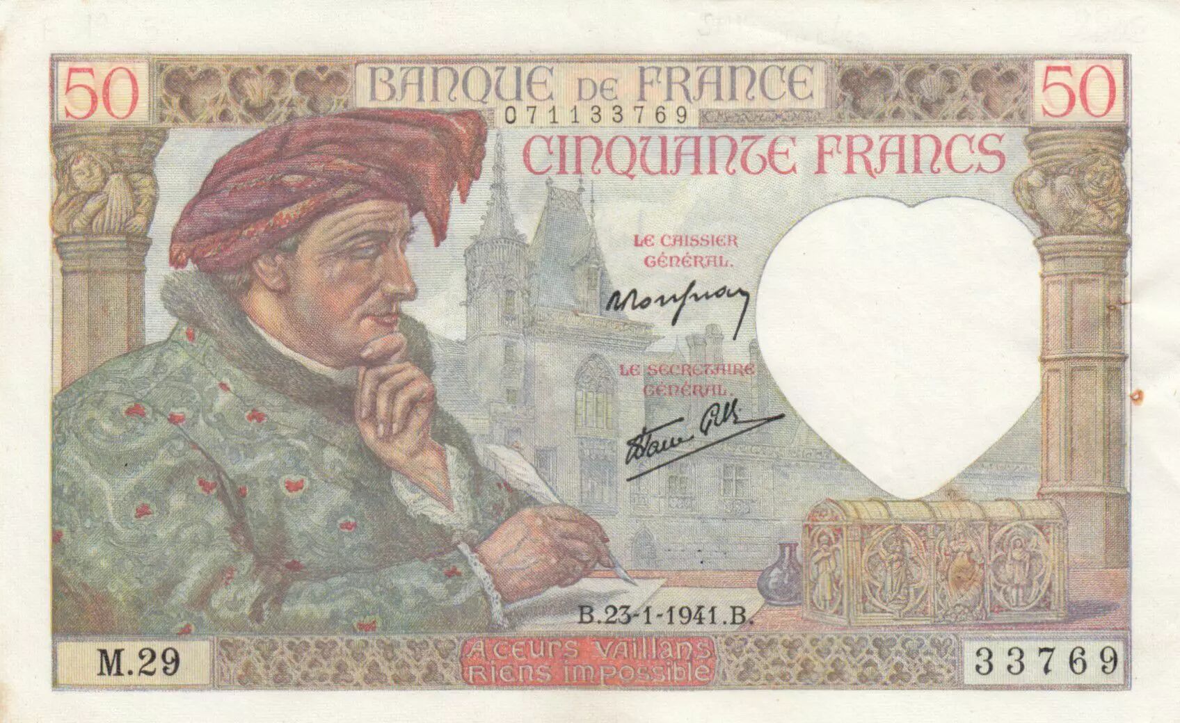 Accueil > Archivage > archivage-Archivage > France 50 Francs Jacques Coeur - 23-01-1941 Série M.29 - TTB+