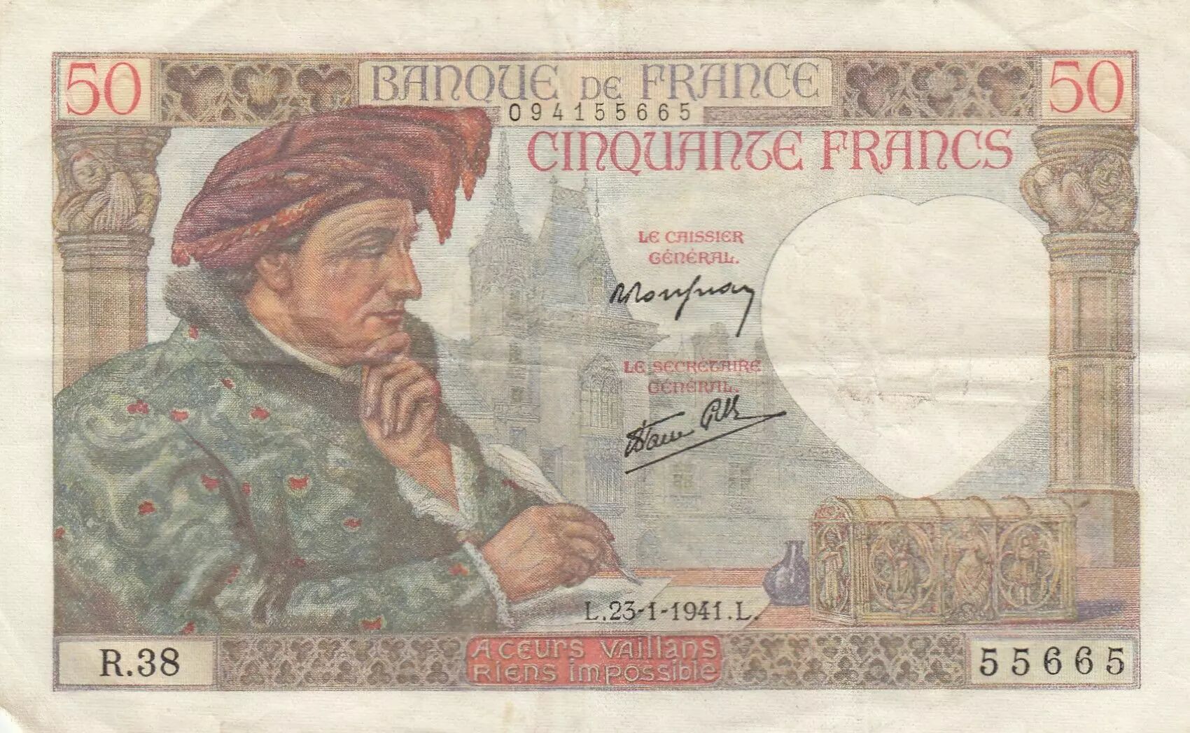 Billet France 50 Francs - Jacques Coeur - 23-01-1941 - Série R.38