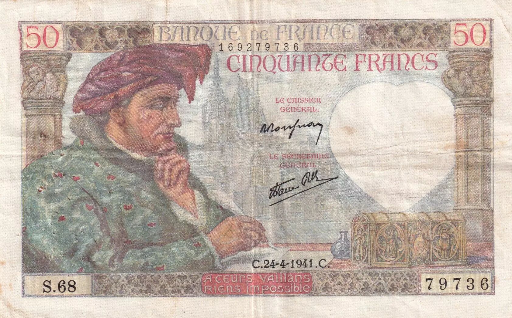 Banknote France 50 Francs Jacques Coeur - 24-04-1941 - Serial S.68