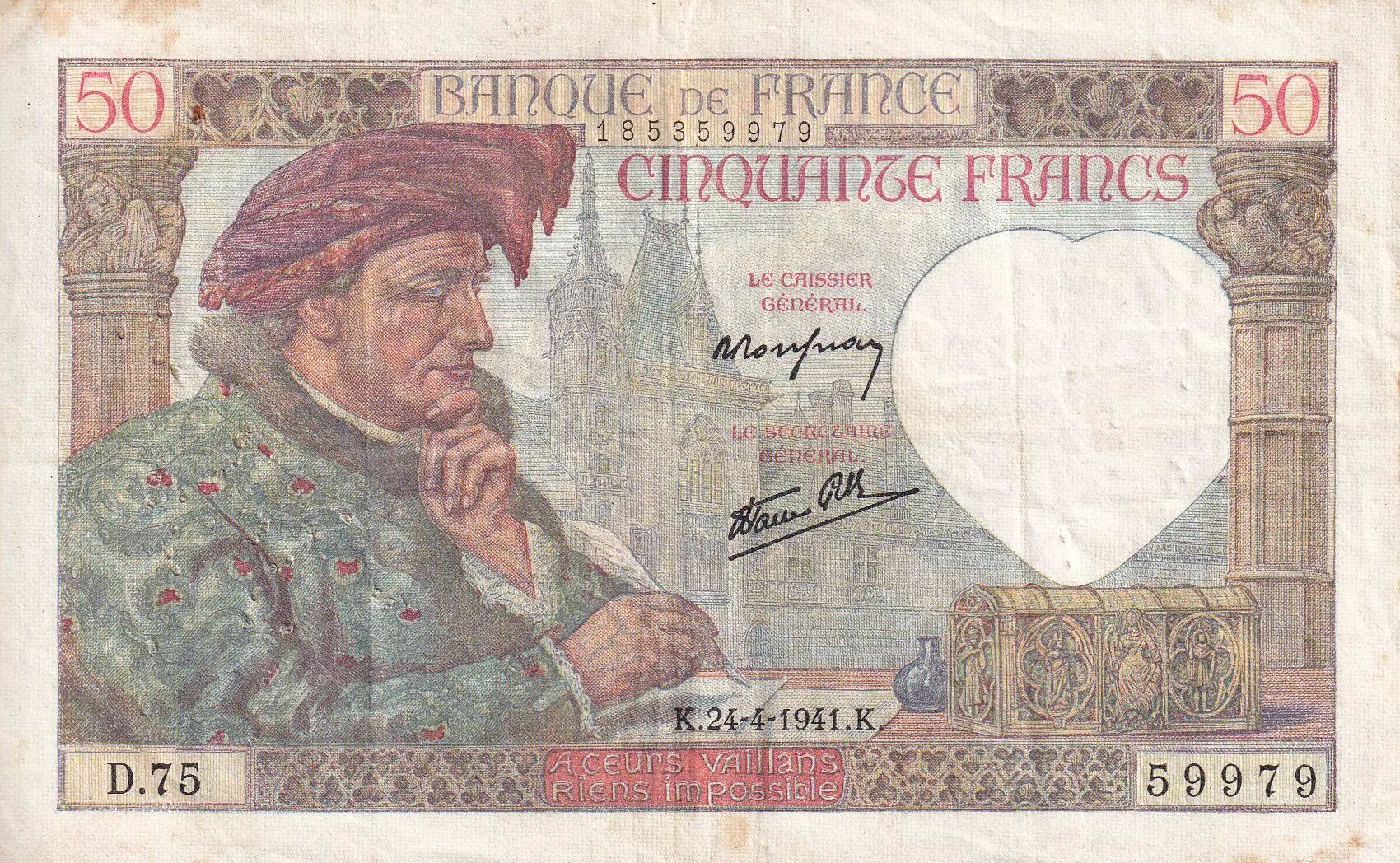 Accueil > Archivage > France 50 Francs Jacques Coeur - 24-04-1941 - Série D.75 - F.19.09
