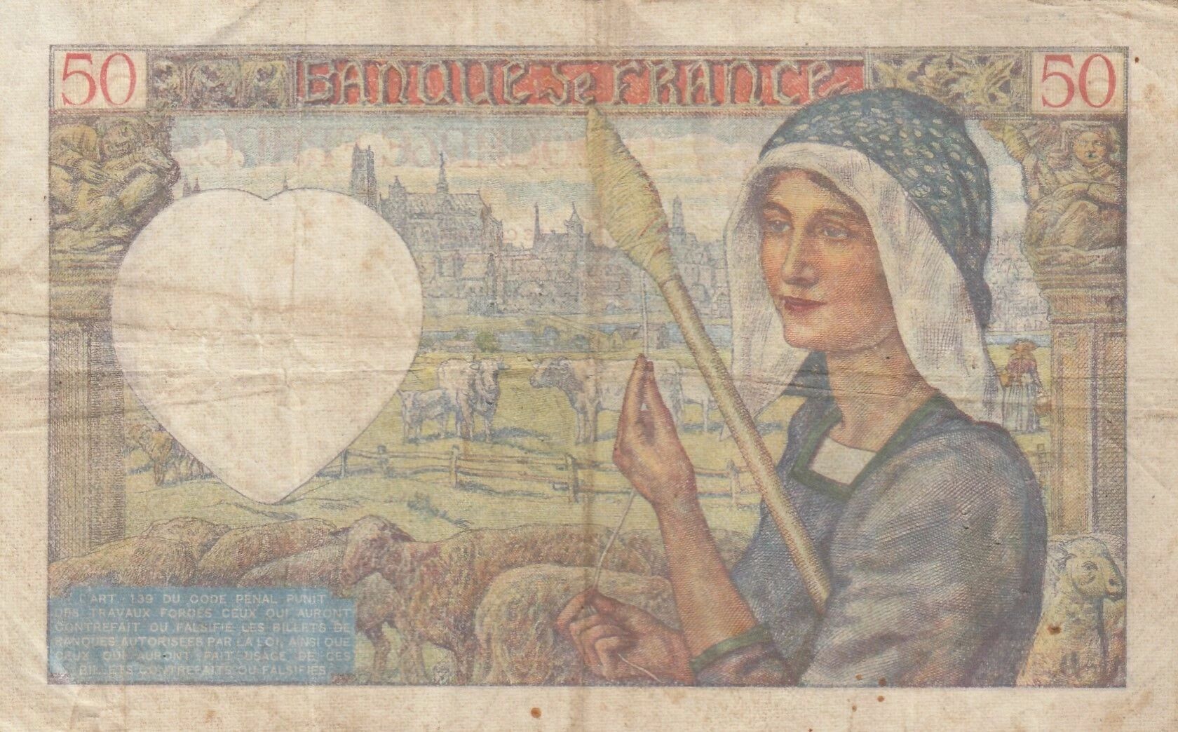 This French banknote was issued on September 26, 1940. It is a 50 franc note, named Jacques Coeur, belonging to the C.17 series.