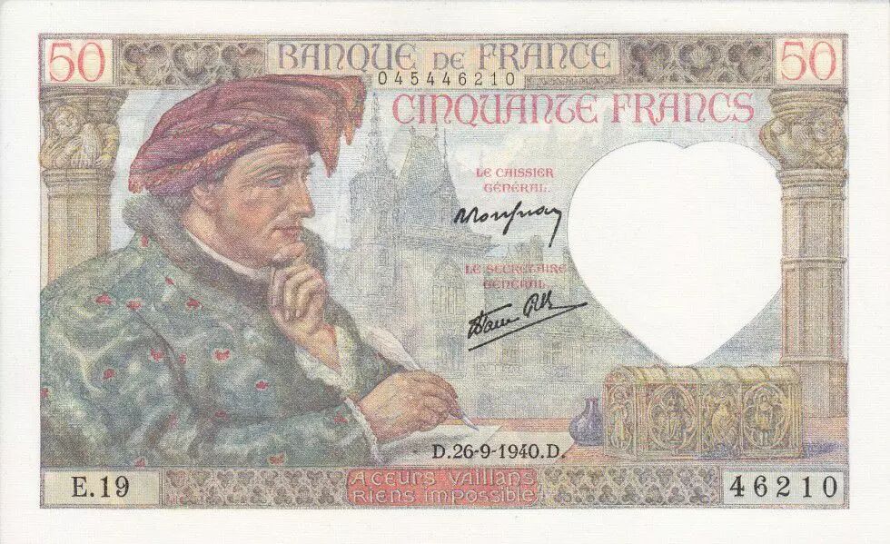Home > > France 50 Francs Jacques Coeur - 26-09-1940 Serial E.19