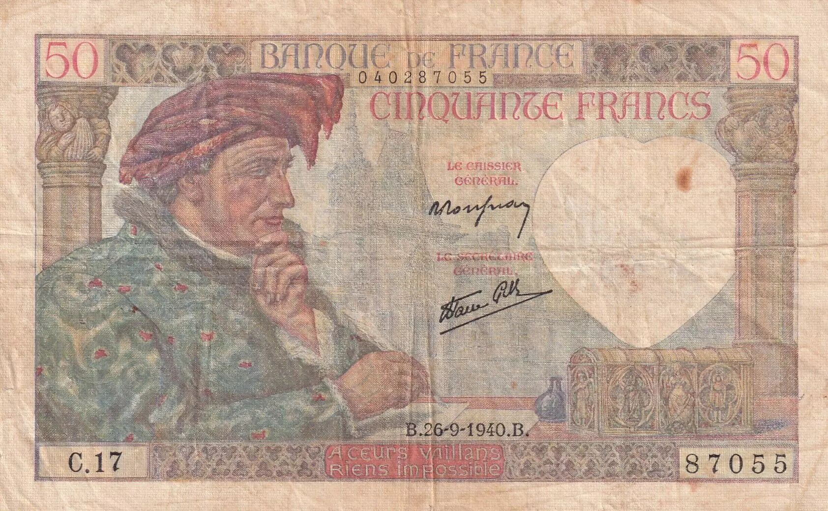 plis, salissures, épinglages, billet usagé, trace de rouille, coupures