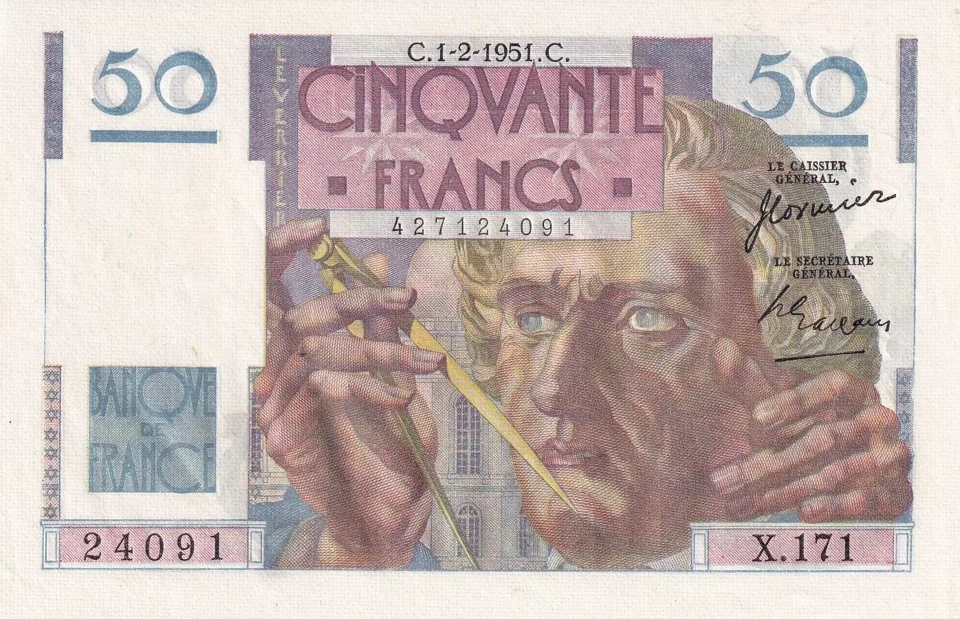 Banknote France 50 Francs - Le Verrier - 01-02-1951 - Serial X.171 - P.127