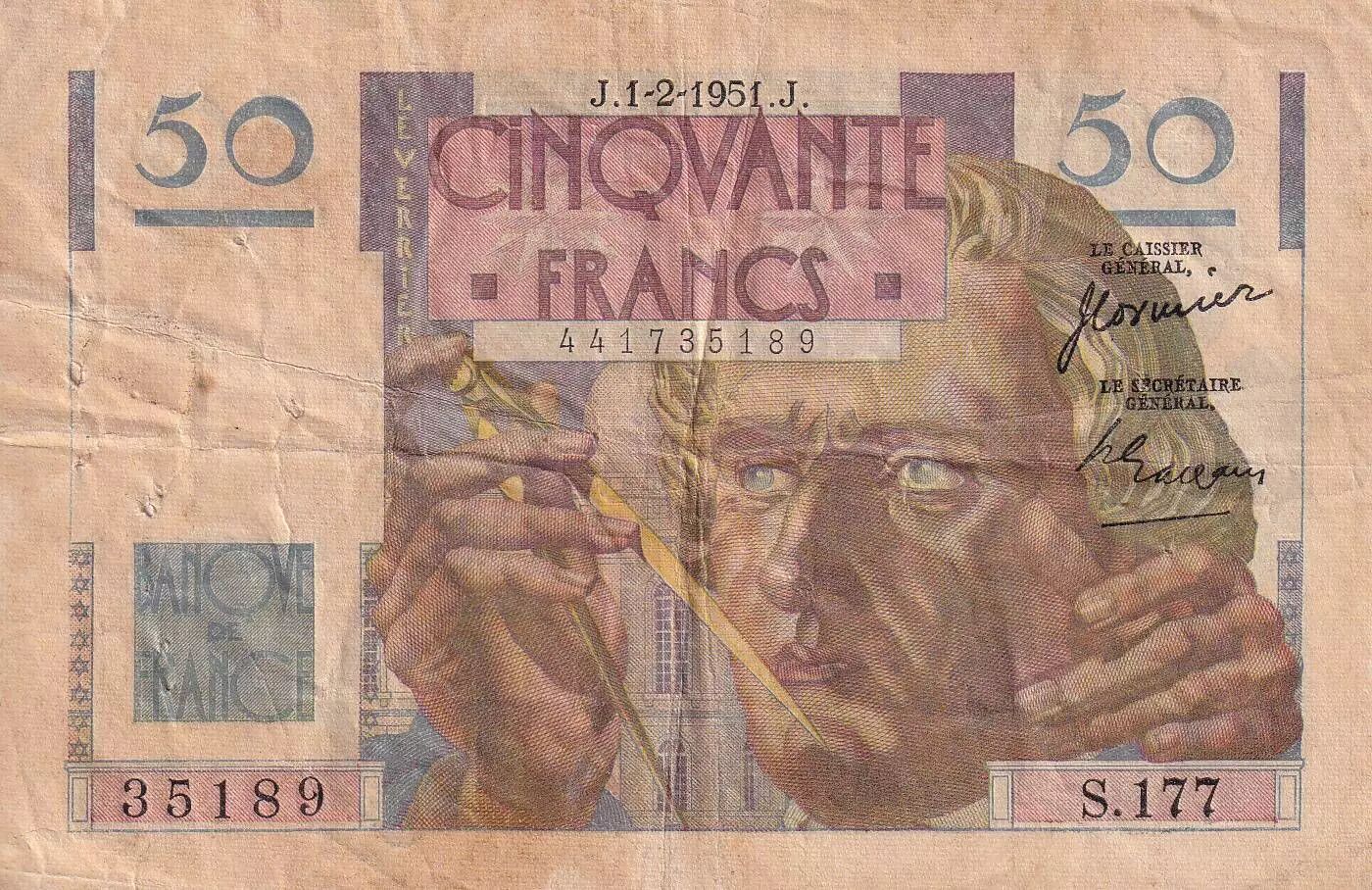 Billet France 50 Francs - Le Verrier - 01-02-1951 - Série S.177 - TB - F.20.17