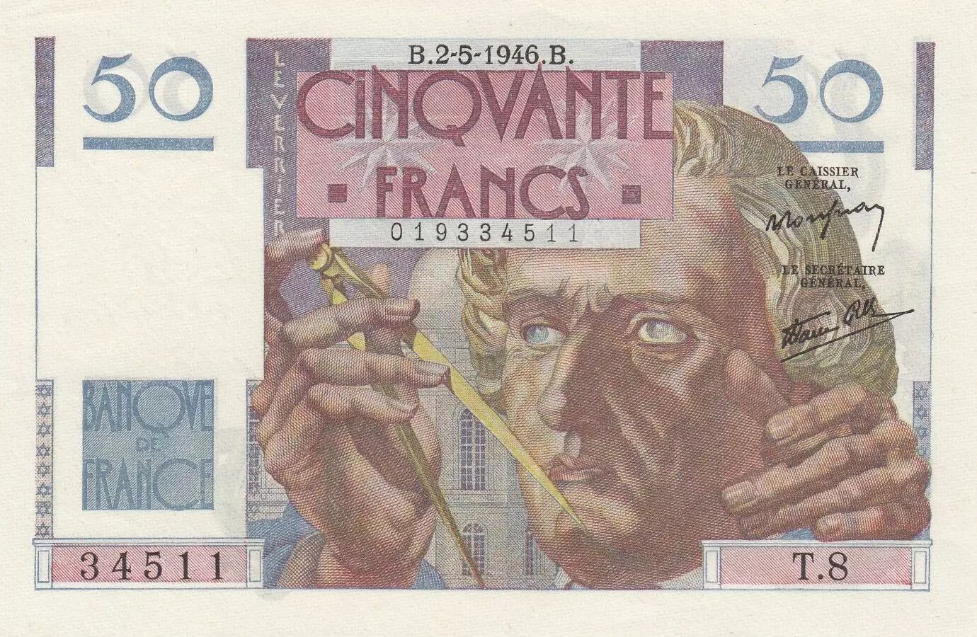 Billet France 50 Francs Le Verrier - 02-05-1946 - Série T.8