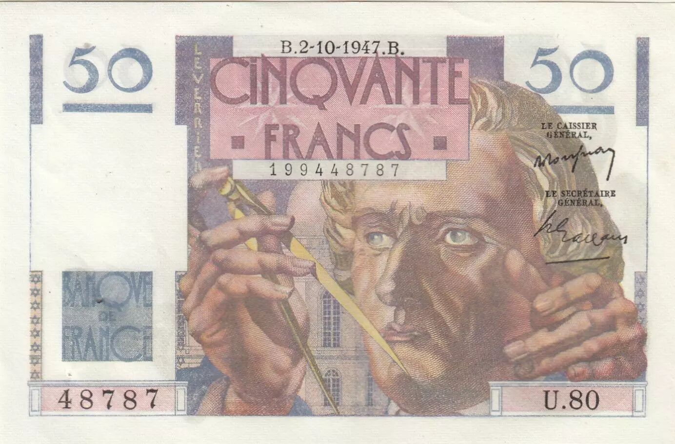 Billet France 50 Francs - Le verrier - 02-10-1947 - Série U.80
