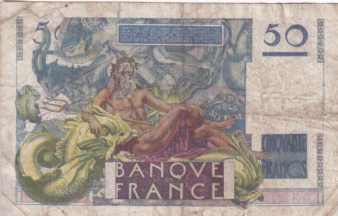 Accueil > Archivage > France 50 Francs - Le Verrier - 03-10-1946 - Série J.41 - F.20.06