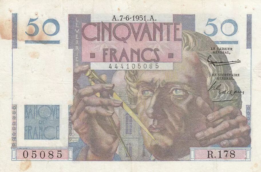 Le billet est associé à la figure de Urbain Le Verrier, astronome et mathématicien français du XIXe siècle, connu pour ses travaux en mécanique céleste et sa prédiction de l'existence de la planète Neptune. Le choix de Le Verrier pour figurer sur ce billet témoigne de l'importance accordée aux sciences et aux personnalités scientifiques dans l'iconographie des billets de banque français.