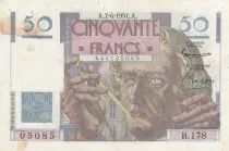 Ce billet de 50 francs français, émis le 7 juin 1951, appartient à la série R.178. Il représente une valeur nominale de cinquante francs, monnaie en cours en France à cette époque.
