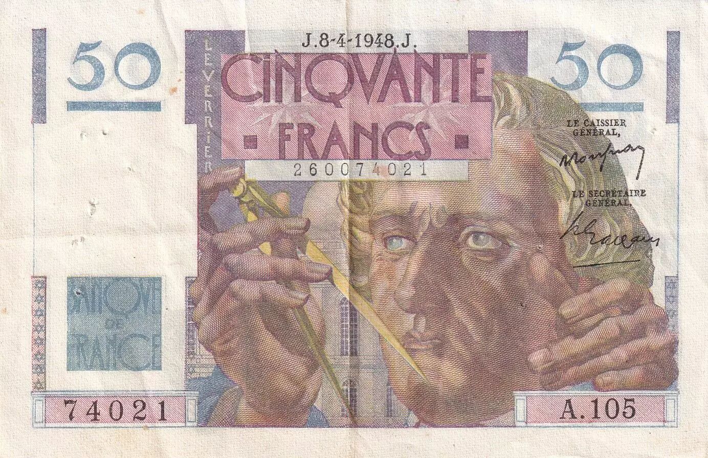 Billet France 50 Francs Le Verrier - 08-04-1948 - Série A.105