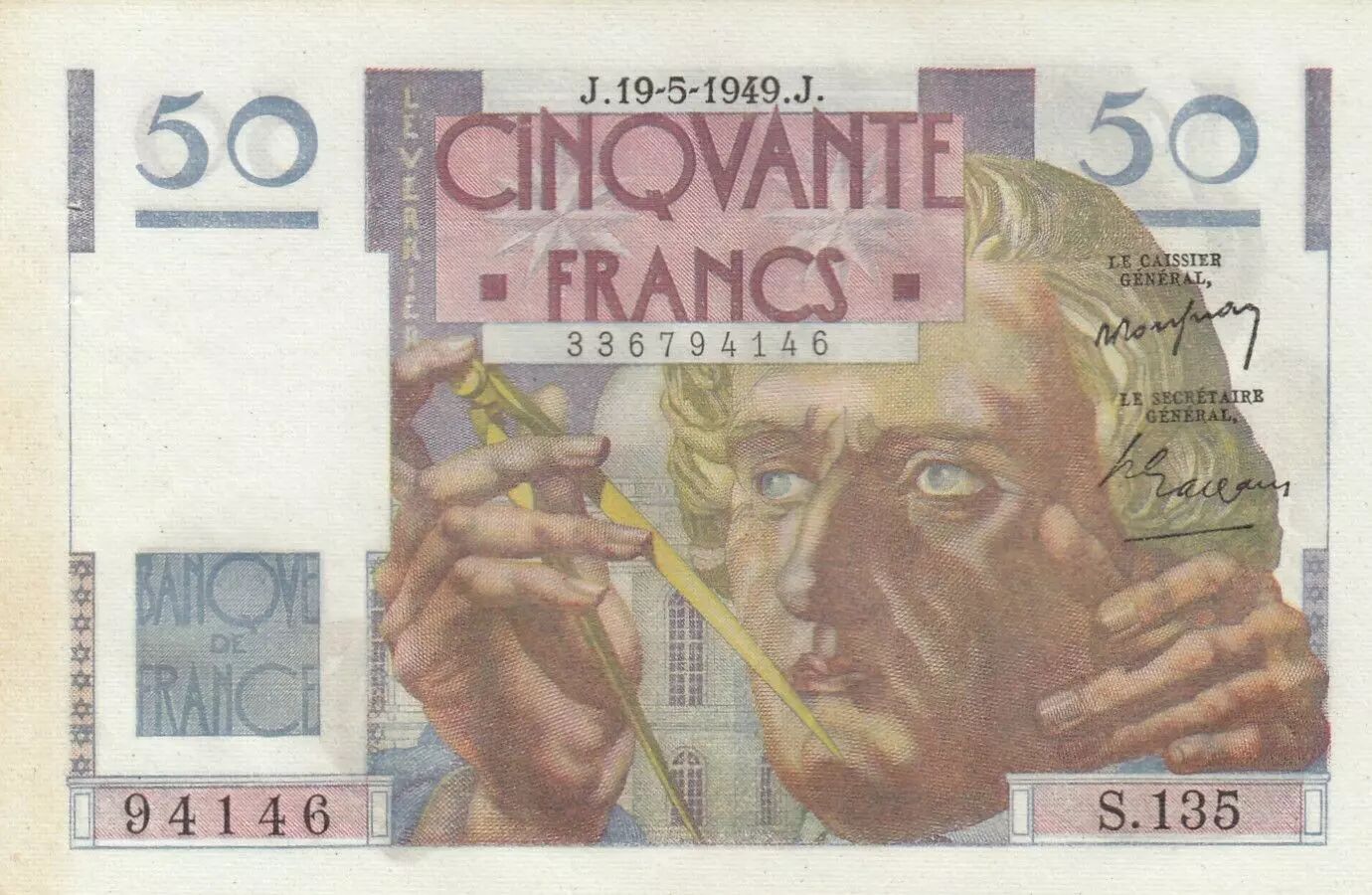 Billet France 50 Francs - Le Verrier - 19-05-1949 - Série S.135