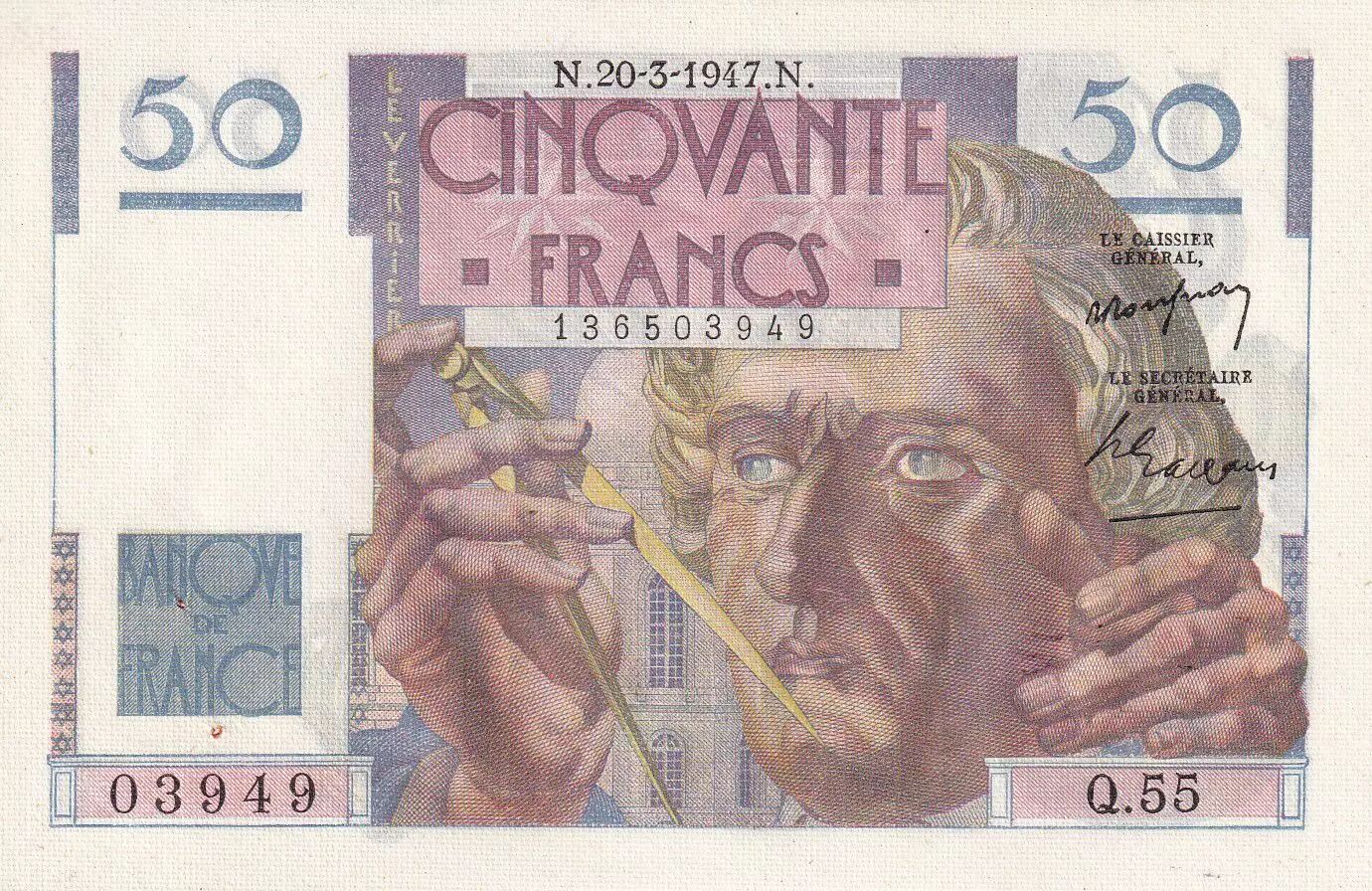 Accueil > Archivage > France 50 Francs - Le Verrier - 20-03-1947 - Série Q.55 - F.20.07