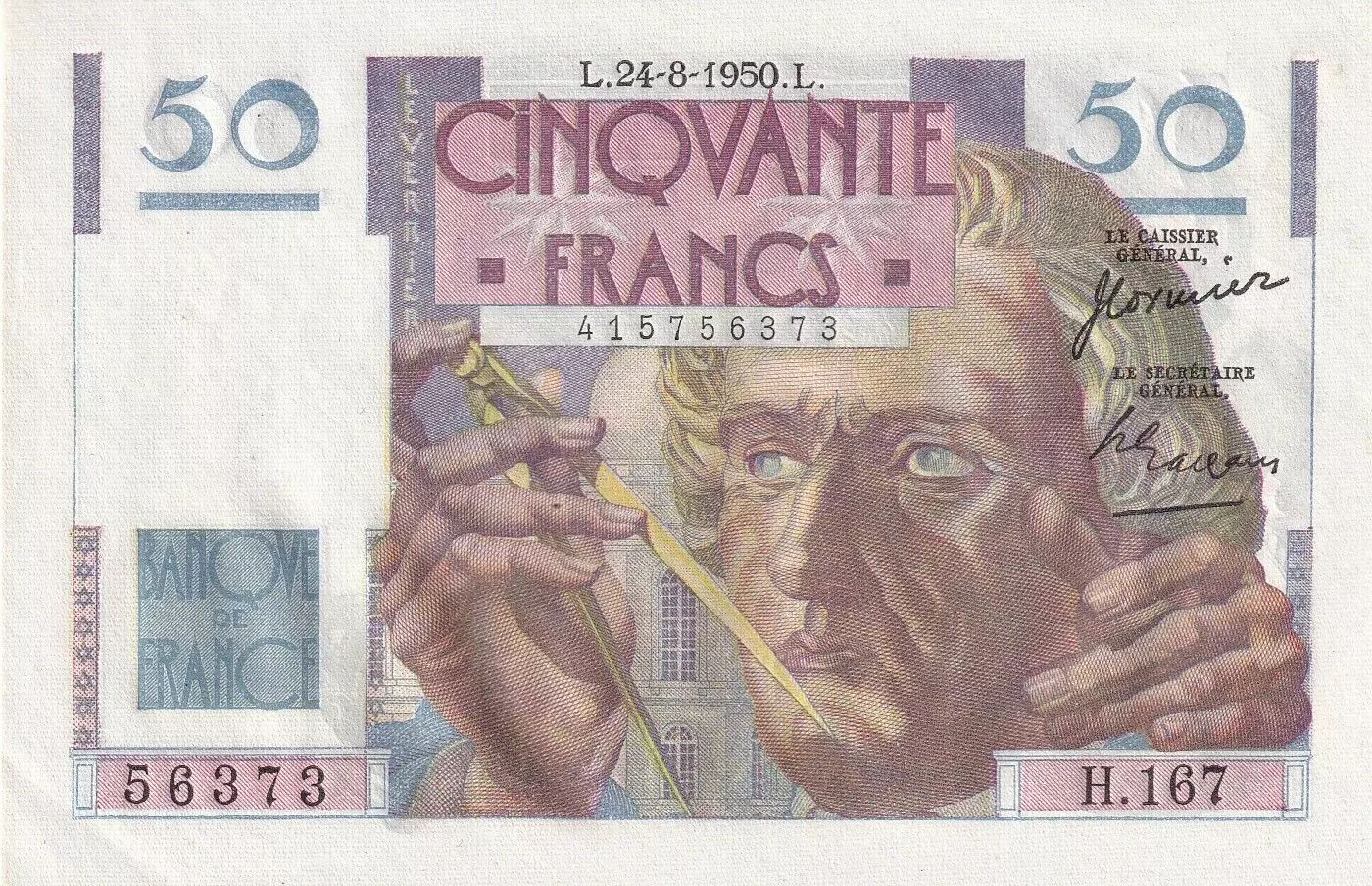 Accueil > Archivage > France 50 Francs - Le Verrier - 24-08-1950 - Série H.167 - F.20.16