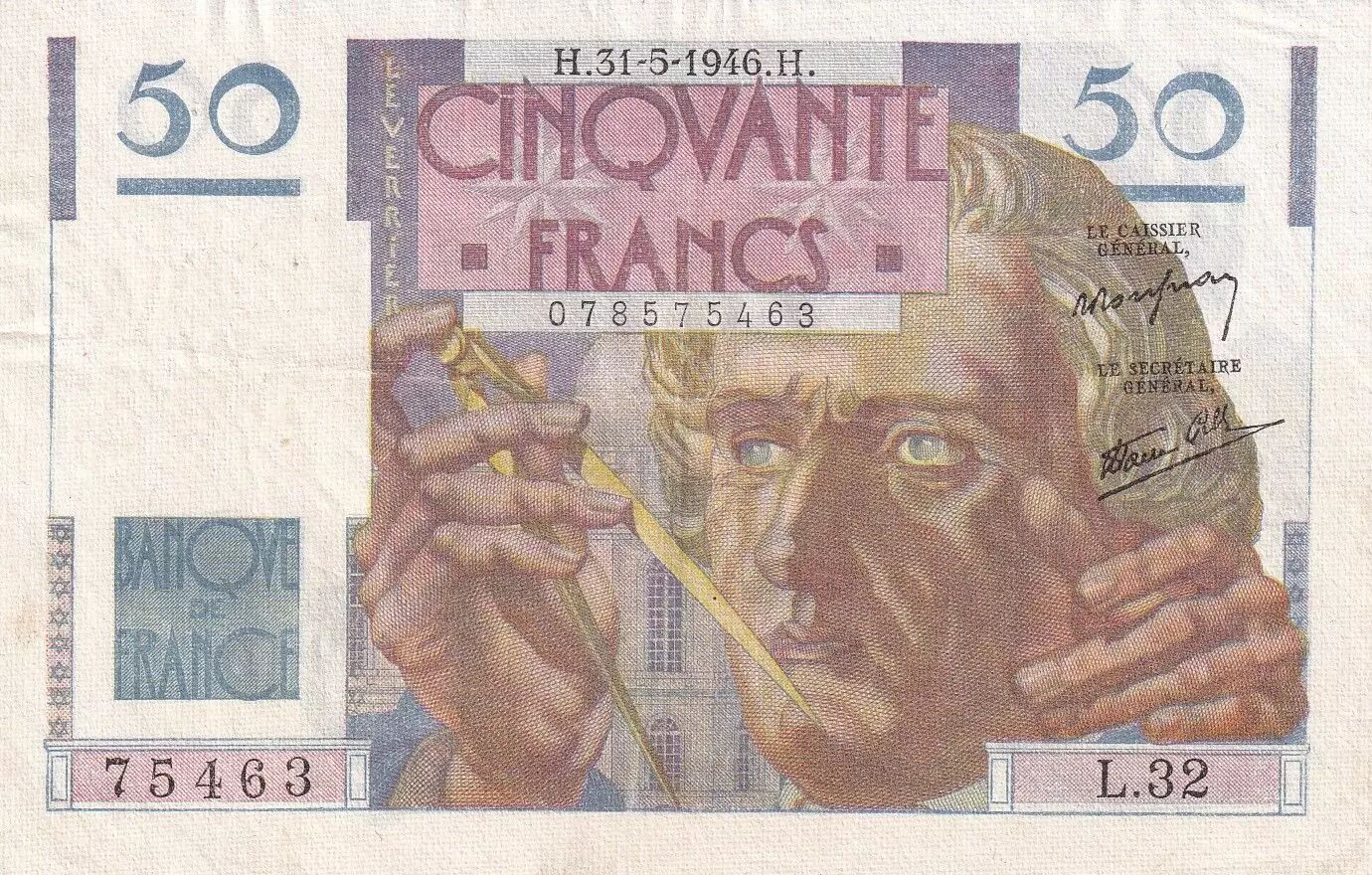 Accueil > Archivage > France 50 Francs Le Verrier - 31-05-1946 Série L.32