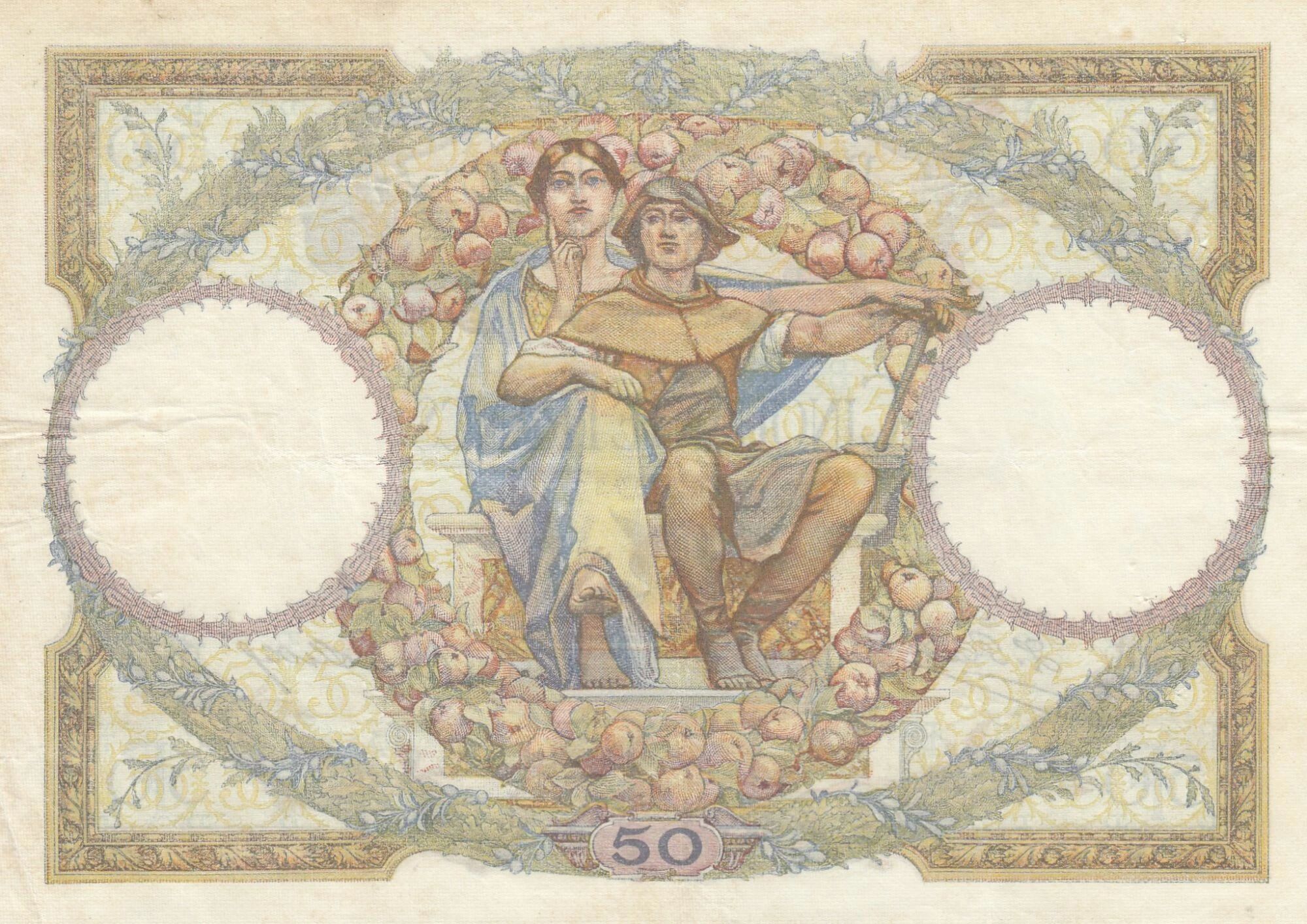 Ce billet de banque français a une valeur nominale de 50 francs. Il a été émis en 1931.