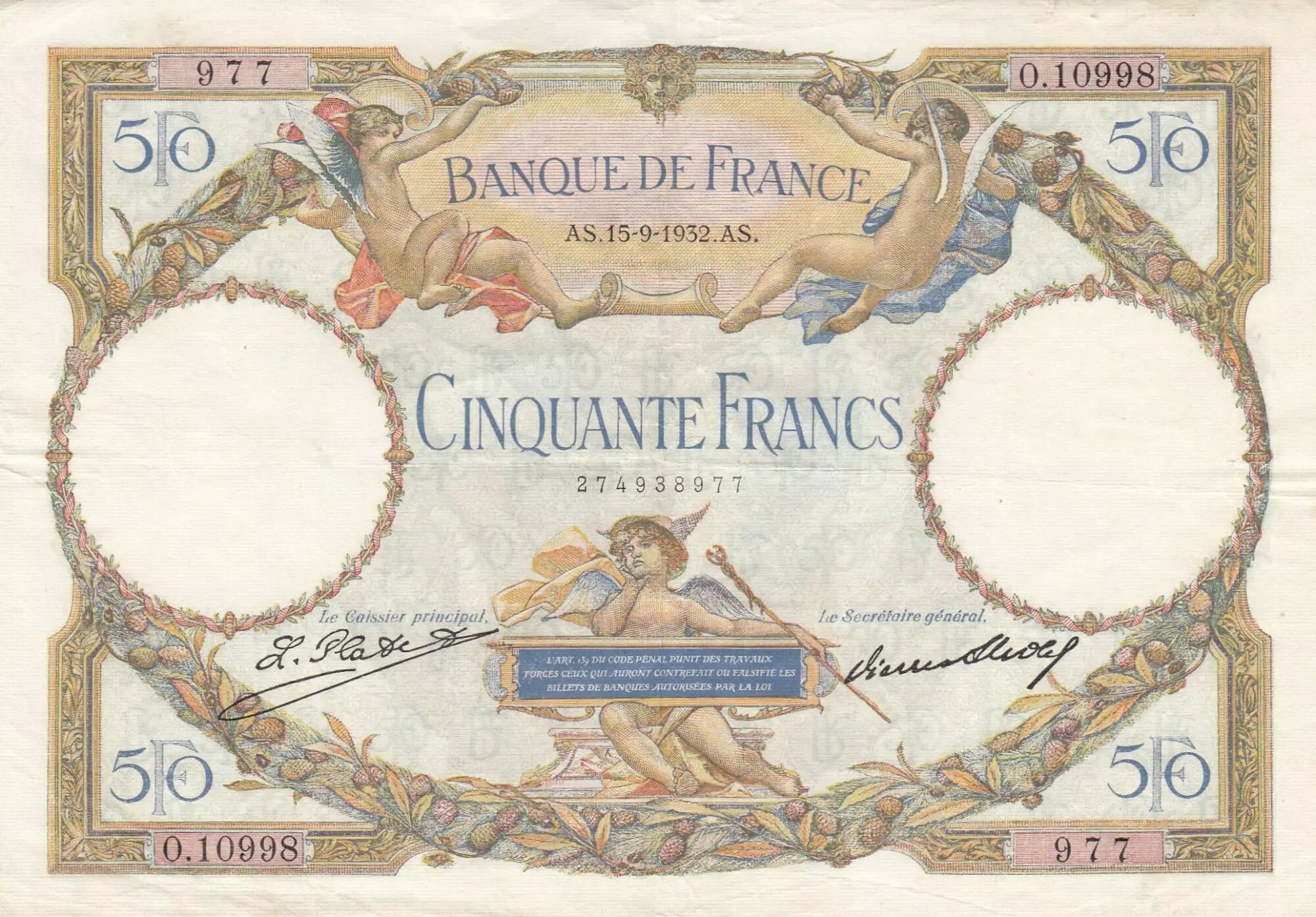 Banknote France 50 Francs - Luc Olivier Mercon - 15-09-1932 - Série O.10998