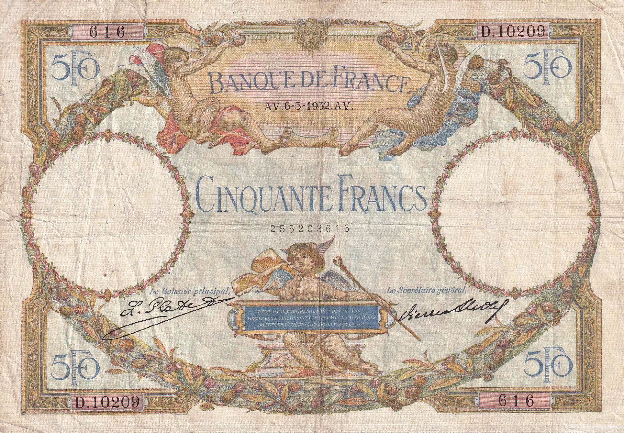 Banknote France 50 Francs - Luc Olivier Merson - 06-05-1932 - Serial D.10209 - P.80