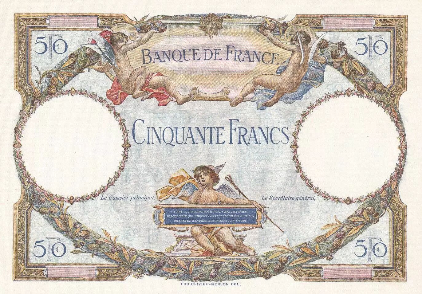 Belle Epreuve RECTO-VERSO sans filigrane, avec signature LUC OLIVIER MERSON