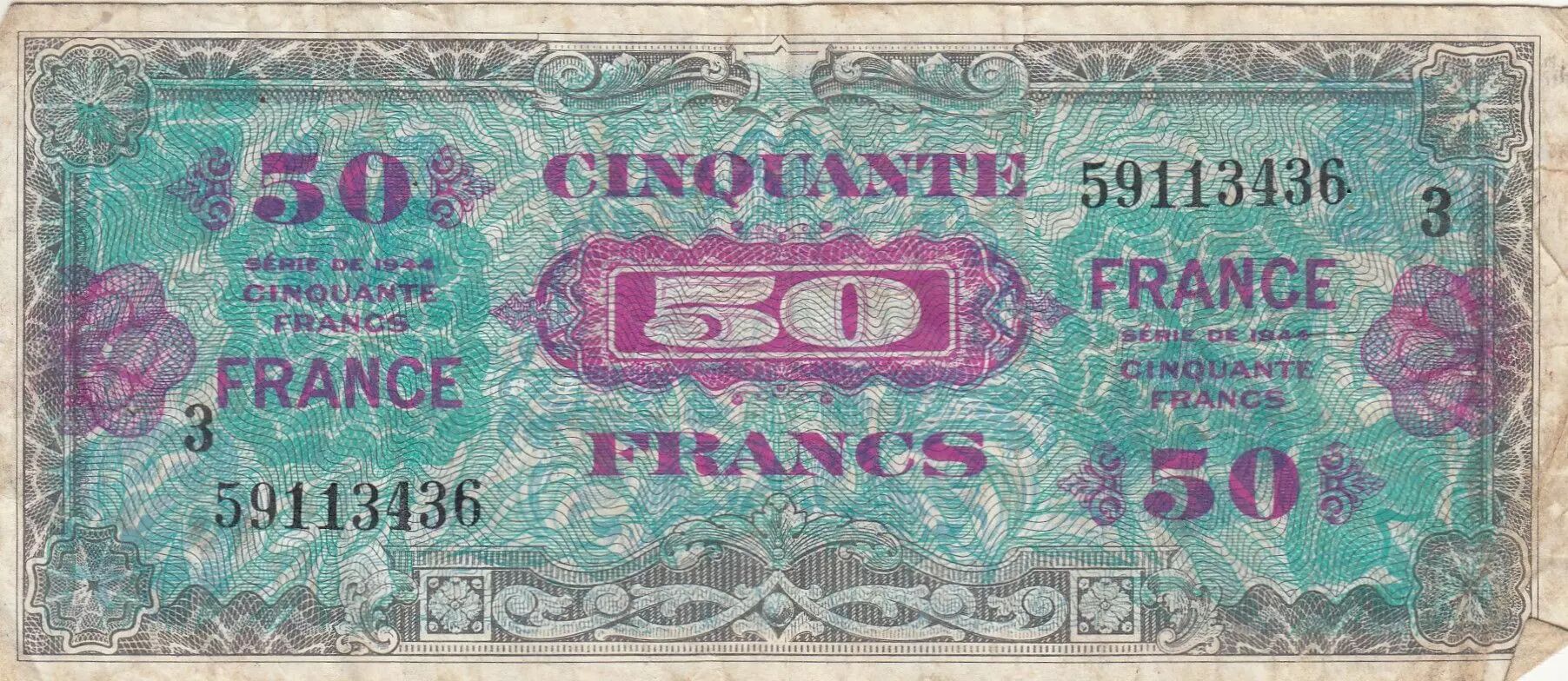 Billet France 50 Francs - Monnaie militaire des alliés - 1944 - Série 3
