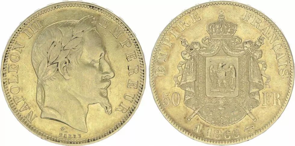Pièce France 50 Francs Napoléon III Tête Laurée - 1866 A Paris