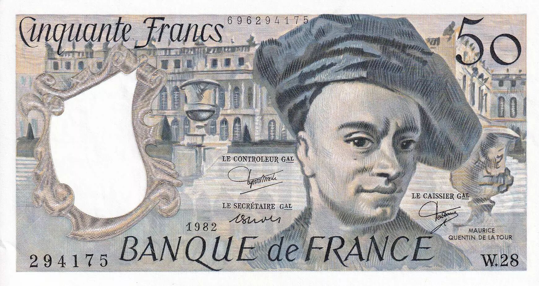 Home > French Banknotes > Bank of France Banknotes > 50 Francs Banknotes > Quentin de la Tour Type 1976 (1976-1992) > France 50 Francs - Quentin de la Tour - 1982 - Serial W.28 - PUNC - P.152b