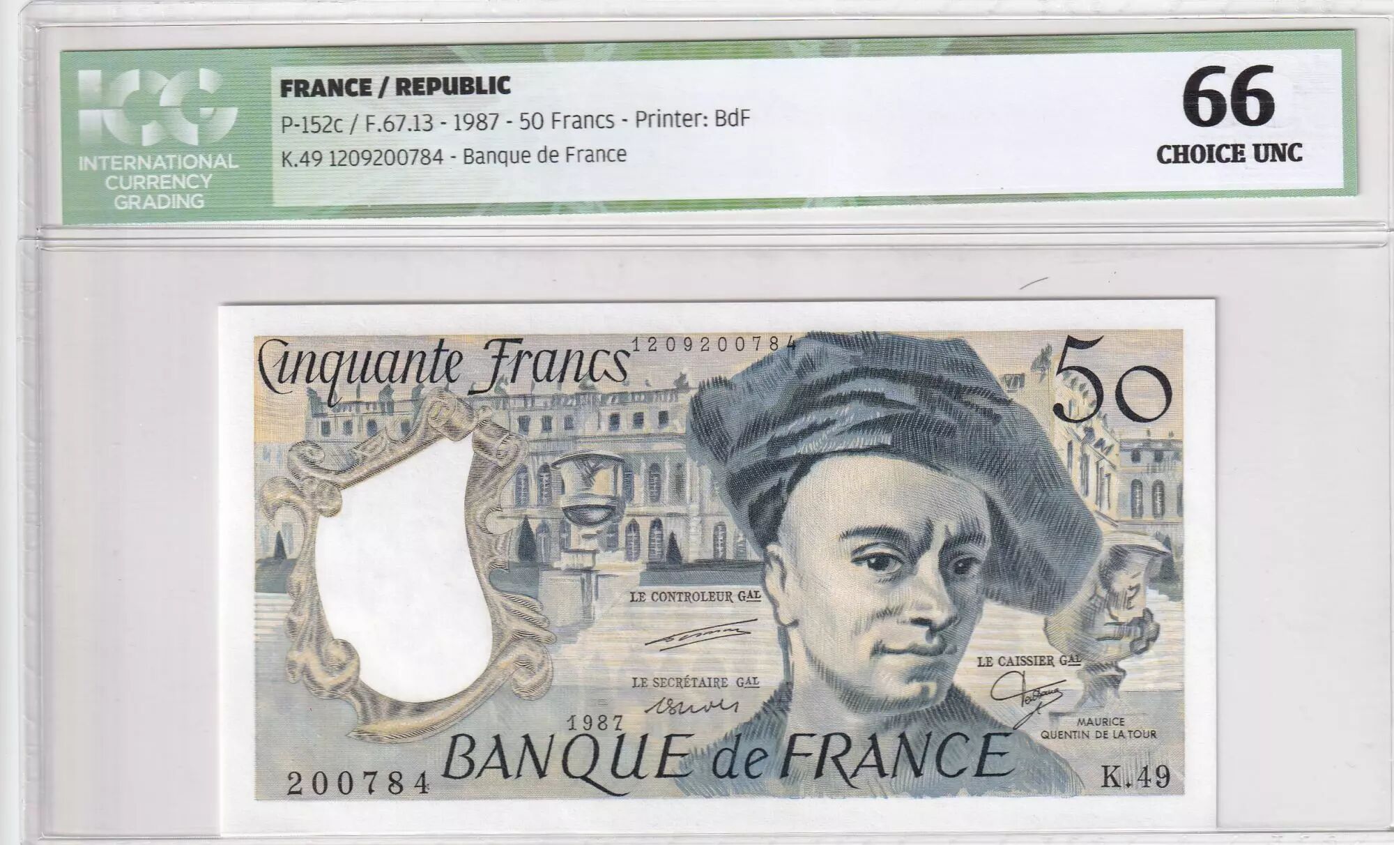 Billet France 50 Francs - Quentin de la Tour - 1987 - Série K.49 - ICG 66 Choice UNC